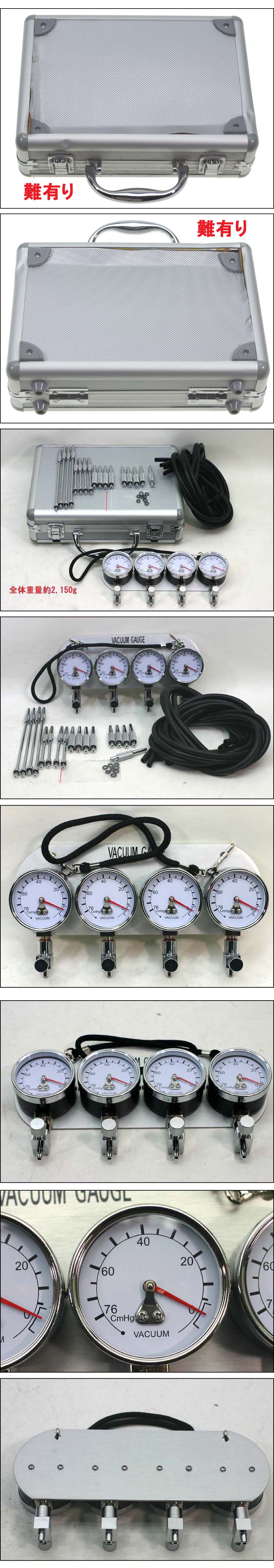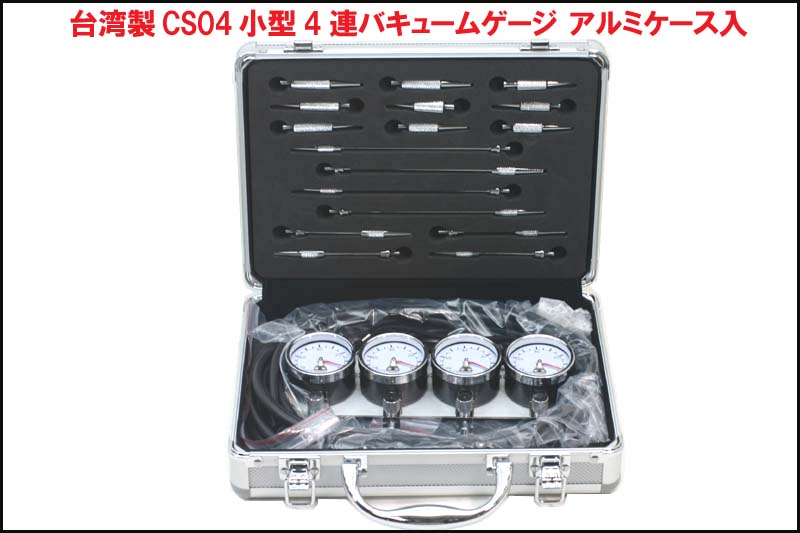 ■台湾製 小型4連アナログバキュームゲージ アルミケース入 アダプター17本付 新品 ■キャブレターの同調を取ることによりおとなしかったバイクが突然暴れ出します。 ■これは燃料系の調整だけで驚くほどマシーンの性能が上昇します。 ■この4連アナログバキュームゲージは左周りです。時計方向ではありません。 ■使用上差支えがありませんので、気になる方の入札はご遠慮下さい。 ■乱暴に扱うと針が振り切ってしまう事が有りますので使用には注意して下さい。 ■アダプターさえ合えば4輪車も共通で使用可能です。 ■ホンダ2輪用アダプター付き。ヤマハ、スズキ、カワサキ車には必要がないらしいです。 ■メーカー希望販売価格\18,000 ■付属品リスト ■4連アナログバキュームゲージ ケース含む 重量約2,150g メーター外径53mm ■ホース 内径5mm 外径8mm 全長950mm 4本 ■ホースクリップ 4個 ■アダプター1 5mm ピッチ0.8 170mm 4本 ■アダプター2 5mm ピッチ0.8 99mm 4本 ■アダプター3 6mm ピッチ0.75 53mm 4本 ■アダプター4 6mm ピッチ1.0 60mm 4本 ■アダプター5 6mm ピッチ無し 55mm 1本 ■バキュームゲージの使用方法 ■エンジン停止時に取り付けてください。 ■エンジンをかける時は必ずバルブのコックを閉めてください。 ■閉めていないとエンジンが始動したときにメーターが壊れます。 ■エンジンをかけてからバルブのコックをゆるめていきます。 ■その時メーターの針が触れないようにバルブを調整します。 ■キャブレターのスロットルの調整をすることで針が同じ位置に調整します。 ■No1065 |