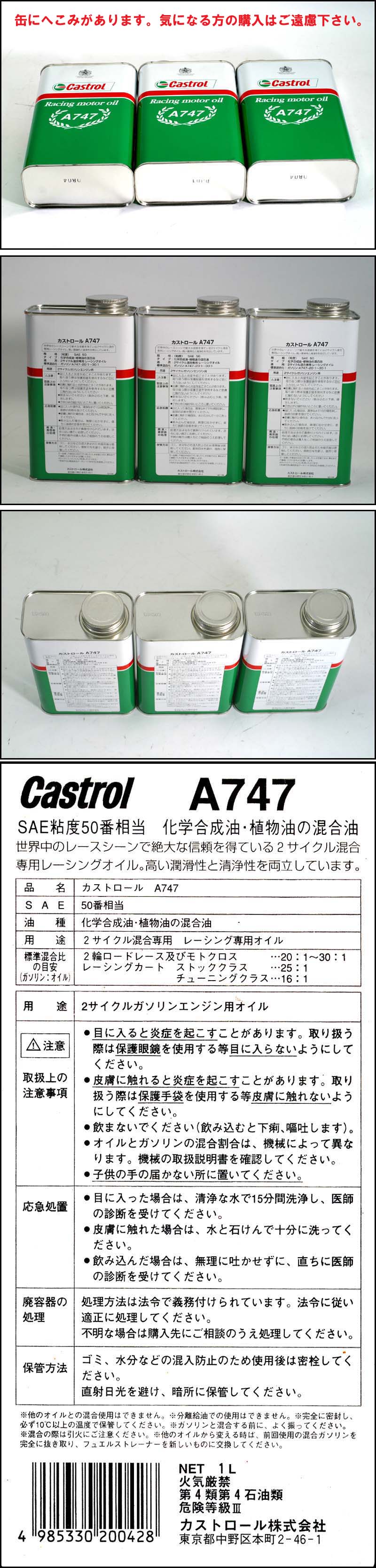 ■カストロール 2サイクルレーシングオイル(混合用) A747 3本 新品