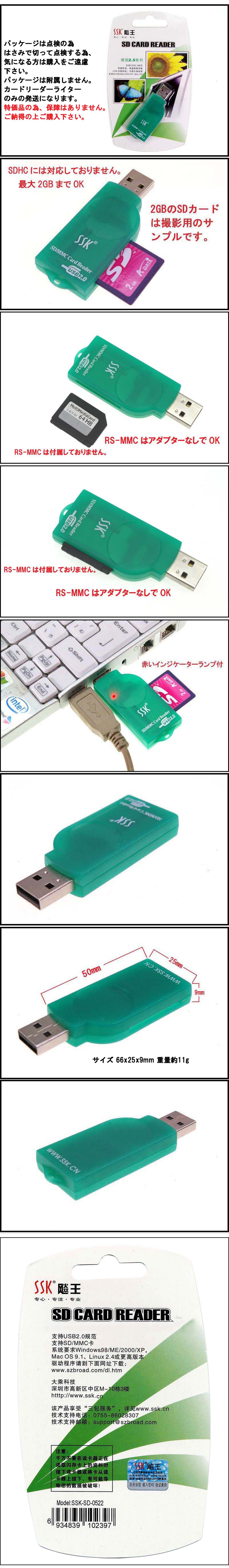 ■中国製 コンパクトタイプ USB2.0対応 SD/MMC カードリーダーライター 片寄りタイプ 新品 ■対応は2GBまでです。SDHCカードには対応しておりません。 ■こんな便利なカードリーダーライターがあったんです。 ■USBが横列に並んでいる場合マウスとこの片寄りカードリーダーを挿せます。 ■パッケージをはさみで切って点検する為、気になる方は購入をご遠慮下さい。 ■輸入品の為、大変申し訳ありませんが保障期間は1週間とさせて頂きます。 ■この商品 メール便 送料 160円で発送可能です。(メール便 代引き不可) 2個ほど同包できます。パッケージなしなら10個ほど同包できます。 ただしパケージが痛む可能性がありますので、気になる方はご遠慮ください。 ■この商品エクスパック(全国500円)で発送可能です。(エクスパック代引き不可) ■メーカー希望販売価格 3,500円(\3,675円税込) ■No1887 |