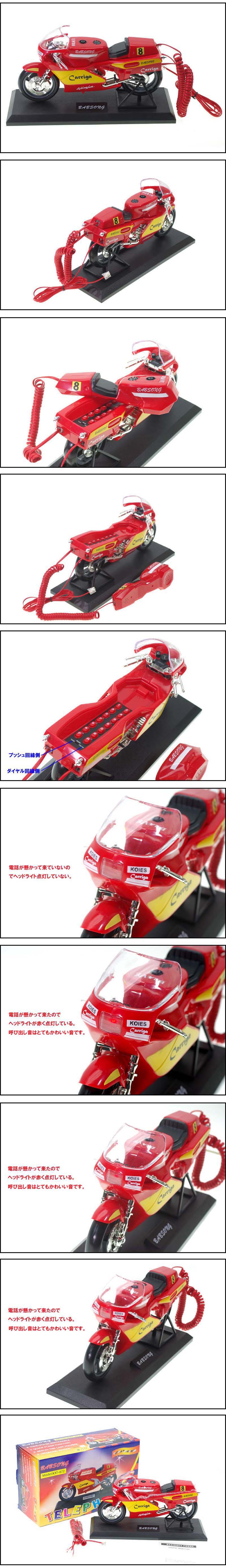 ■バイク型固定電話機 ドゥカティレーサータイプ 置物 新品 ●中国製 型番 KXT-672 ■付属品は電話機本体と赤い電話コード2本付です。 ■オートバイの型をしたカッコイイレーサータイプの電話機です。 ■音質も問題ありません。実用性ありますのでメインで使用も可能です。 ■お部屋や事務所などに置いているだけでとても目立ちます。 ■電話の音色はここをクリックして聞いて下さい。 ■本体と受話器はコードレスではありません。コードで繋ぐタイプです。 ■説明書が付いておりませんので分かる方ののみお願いいたします。 ■新品で保障は有りません。届いた時点で問題有れば交換致します。 ■新品ですが小さな傷などあると思いますが、気にならない方へ。 ■輸送途中で中身が移動してたり、パーツが外れたりしていても気にならない方へ。 ■写真撮影のため開封しております。気になる方の購入はご遠慮下さい。 ■商品確認のテストのため開封しますので、気になる方の購入はご遠慮下さい。 電話の音色はここをクリックして聞いて下さい。 動画再生出来ない方へ、マイコンピュータ→ツールの中のフォルダオプション→ファイルの種類の中の拡張子 (AVI)を探して選択後、ブログラムの変更ボタンをクリックし、再生ソフトを選択し直したら、再生ソフトを変える ことが出来ます。動画再生フリーソフト GOM Player などにも変更できます。 その他の電話 ■CAP090520-KXT-672 |