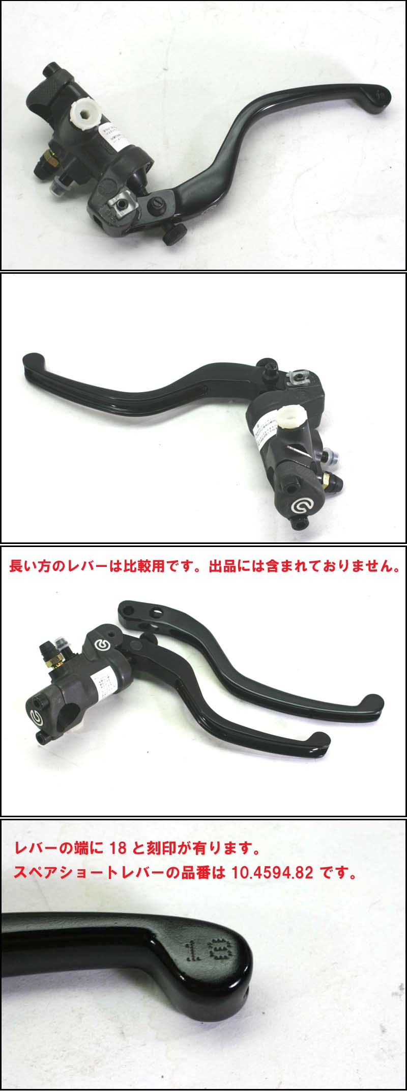 ■ブレンボ 16x18ラジアルブレーキマスターシリンダー 標準ショートレバー付 新品 ■ショートレバー付きの16x18ラジアルマスターシリンダー品番は 10.4760.82 です。 ■ストローク18用です。レバーの端に18と刻印が有ります。 ■スタンダードレバーよりも短いタイプです。スペアショートレバー品番 10.4594.82 ■スタンダード16x18ラジアルマスターシリンダー番号は 10.4760.80 です。 ■この商品についてのお問い合わせは 潟uレンボジャパン 03-3726-9199 ■19x20(20と刻印)にも取付けは可能ですがお勧めできません。 ■20と刻印のショートレバーも出品していますので間違わないようにして下さい。 ■メーカー希望価格34,650税込 ■No1536 |
