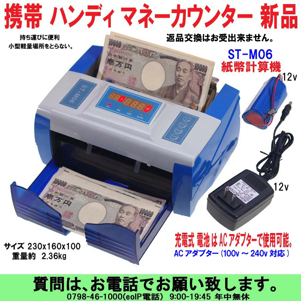 ■ST-M06 携帯 ハンディマネーカウンター 金券 お札 紙幣 計数機 新品 ■中国製 多機能マネーカウンター 枚数を決めてカウンター出来るタイプ ◆手軽で簡単にお札及びチケット金券又は紙などの計算が出来ます。 ■各国通貨対応 ■米ドル、カナダドル、ユーロ ■ルーブル、香港ドル、ポンド ■韓国ウォン、その他 ◆本機にはUV紫外線、MG磁石、IR赤外線の偽札紙幣感知機能が内蔵されています、 ◆電源は後ろの下についておりますのでON/OFFしてください。 ◆電源は自動的には切れませんので、そのつど入り切りして下さい。 ◆計算できる紙のサイズは130x50〜180x100迄です。 ◆本体紙幣送り部に紙幣をセットすると自動的に枚数のカウントを始めます。 ◆付属ACアダプター電源:AC100V〜240V 50/60Hz対応 DC12V ◆充電電池で電源のないところでも使用できます。 ■マネーカウンターはお札を投入するだけではうまくカウントしません。 ■若干のコツがいります、コツは2本の指で投入します。 ■2本の指は 親指と一指し指だけで 投入します、 3本の指で投入すると ■お札が曲がって投入されるのでカウント間違いがでます。 ■お札を置く角度はとても重要です。やや垂直に投入します。 ■お札はさっと置かないと、もたづいたりするとカウント間違いやお札が飛び出たりします。 ■そんなに 難しいことではありません。とてもかんたんです。 ◆仕様 ◆カウント速度 1,000枚/分 ◆給紙容量 100枚 ◆ホルダー容量 100枚 ◆ディスプレイ LED ◆電源 DC12V ◆消費電力 45W ◆温度 40-90% ◆製品サイズ 230x160x100 ◆箱サイズ 280x215x210 ◆単体重量 2.5kgs ◆総重量 3.3kgs ■保証期間1週間。保証書はありません。 ■付属品 ■日本語説明書 ■バッテリー(内蔵して出荷) ■ACアダブター ■電源ケーブル ■130208-R460 |