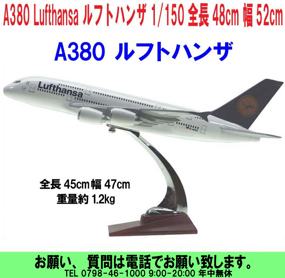 ■中国製 A380 ルフトハンザ 1/150模型 全長48cm 幅52cm 合成樹脂 金属スタンド付 新品 ■A380 Lufthansa の材質はプラスチックで、きれいな塗装仕上げです。 ■この模型に使用されているプラスチックは硬くて重量感がすこしありません。 ■プラスチックですのでぶつけても壊れたりはしにくいです。 ■全長48cm 幅52cmもありますので 展示しても、ど迫力があります。 ■箱も入れての総重量は約2,560gです。A380の重量は約1.2kgです。 ■中国製の為完璧な物は有りませんので気になる方のご購入はご遠慮下さい。 ■目立たない傷など有りますので、気になる方はご遠慮下さい。 ■輸入品の為、箱は少し傷んでおりますので気になる方はご遠慮下さい。 ■出荷時、当方で点検の上、出荷させて頂きますのでご安心下さい。 ■特殊な商品ですので分かる方のみご購入をお願い致します。 ■保障はありません。届いた時点で確認お願い致します。不良の場合交換致します。 ★★★ 参考 ★★★ 実機A380 (機体寸法) 全長:72.6メートル(シロナガスクジラ2頭分の長さ) 全高:24.1メートル(キリン5頭分の長さ) 胴体直径:7.1メートル 史上最大 850人ぐらい乗るそうです。 (エンジン) 4×ロールス-ロイス トレント970 ファン直径:3メートル 全長:5.3メートル全高 約6300キログラム (価格) 航空機エアバスA380ジェット機の価格 2億8000万ドル程度だそうです.(90円=252億円) ■メーカー希望販売価格 \45,000円+税 ■101015-R190LUF |