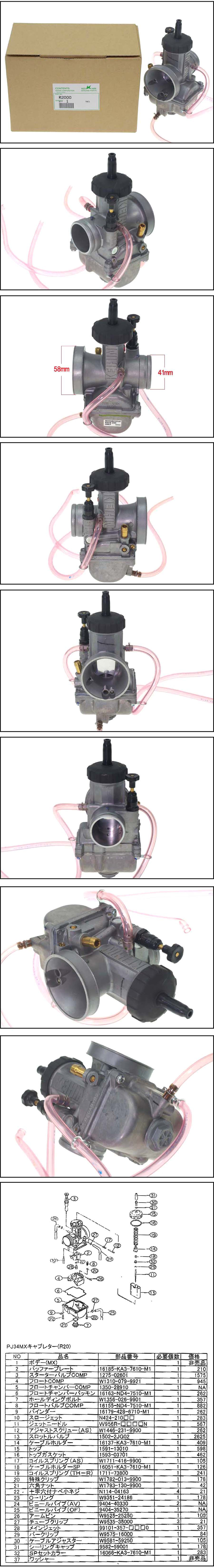 ■ケイヒンKEIHIN 京浜 レース改造用 PJ34MXキャブレター単体2サイクル用 新品 ■2サイクル専用につき4サイクル車には向いておりません。 ■あらゆる2サイクル車の改造用キャブレターです。 ■改造パーツになりますので、このパーツの分かる方のみお買い求め下さい。 ■かなりの技術と知識のある方のみご購入頂ける改造パーツです。 ■2サイクル専用キャブです。4サイクルには向いていないようです。 ■あらゆる2サイクル車の改造用キャブレターです。 ■セッティングは出来ておりませんのでご注意下さい。 ■メインジェットは何番が入っているかの問いあわせがございますが 購入してからセッティングをしなければなりませんので何番が入って いても関係ありませんではないでしょうか。 このような質問をされる方には理解出来ないパーツですので、ご購入 されてもご希望の性能が出ませんので、購入はご遠慮下さい。 ■改造パーツになりますので、このパーツの分かる方のみお買い求め下さい。 ■かなりの技術と知識のある方のみご購入頂ける改造パーツです。 ■購入後のサポートは難しいのでお断り致しております。 ■購入後のサポートも交換も返品も一切お受け出来ません。 ■キャブレターの保障は一切御座いません。 ■パーツリストの部品の販売はしておりません。 ■メーカー希望販売価格 \22,800円+税 バムレーシング ■No1624  |